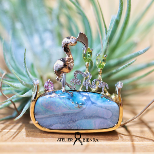 フラミンゴ ブローチ・ネックレス2way ボルダーオパール3.5ct